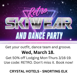 Book now and get your 3rd night free. Free parking is included when you stay slopeside at Crystal Hotels. Choose from three different hotels. Dog-friendly spaces. Alpine Inn dining, the Snorting Elk. All your meals and endless fun.